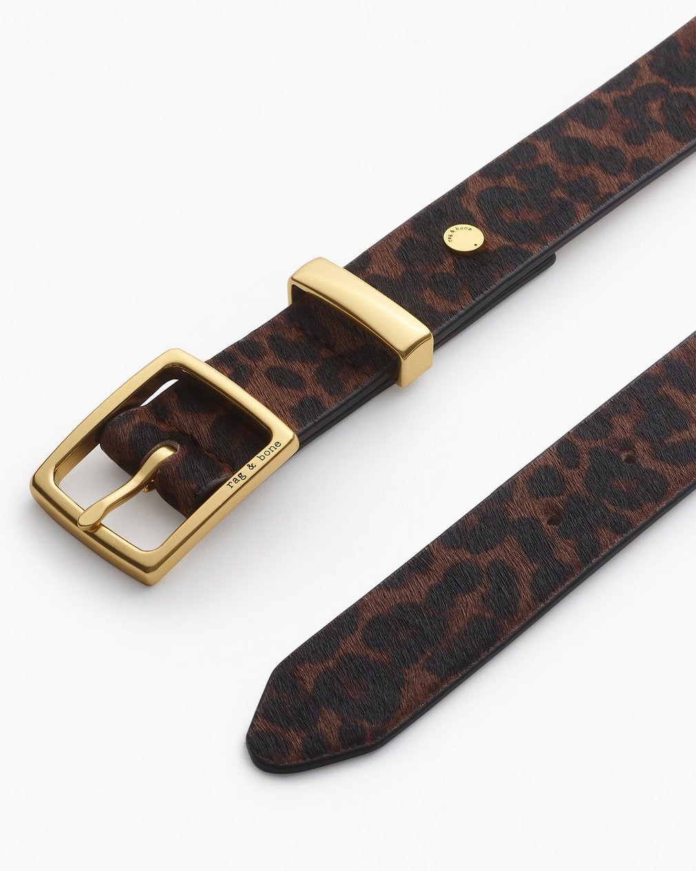 Borrowed from the boys. This update to our best-selling menswear-inspired belt is crafted from leopard-print calf hair and finished with a metal keeper.