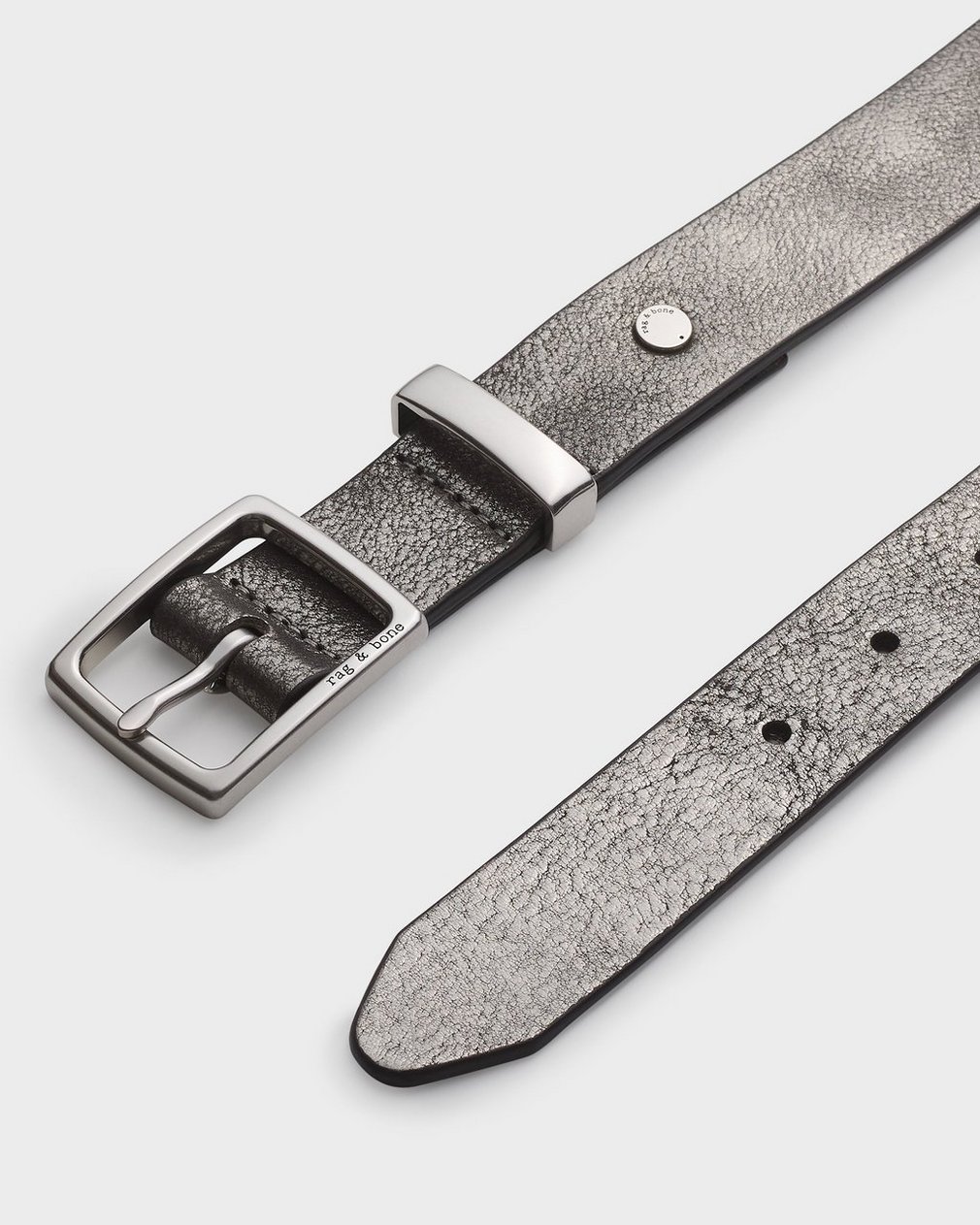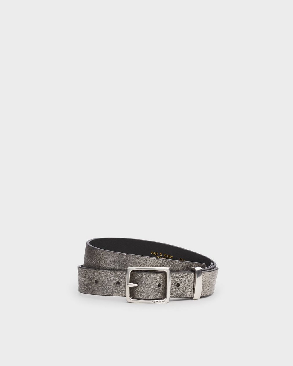 Borrowed from the boys. This update to our best-selling menswear-inspired belt is crafted from full-grain Italian leather with a metallic finish. A metal keeper completes its look.