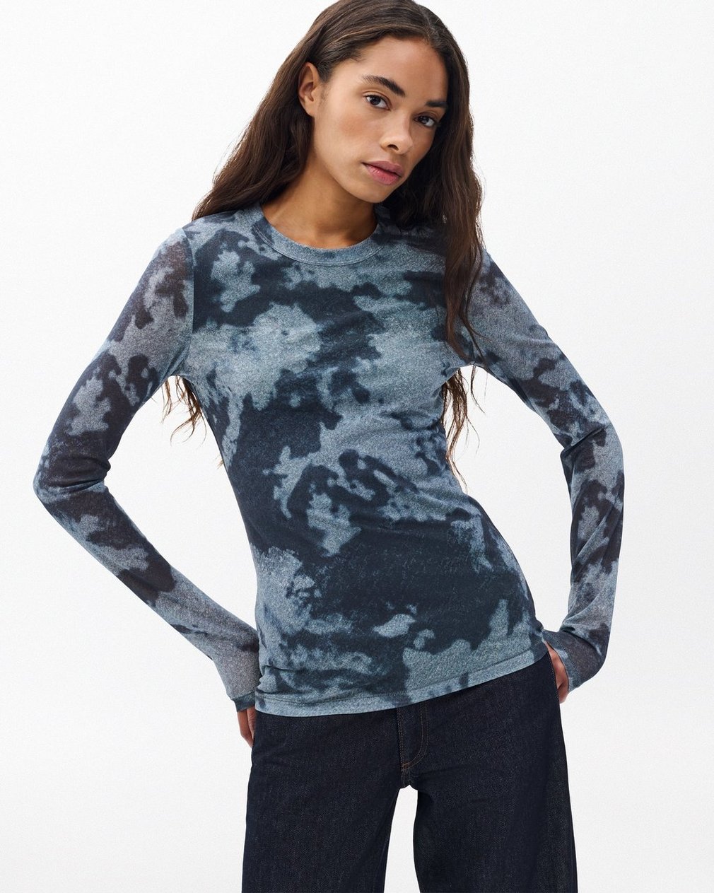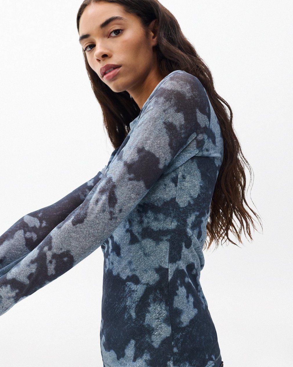 Printed for a dynamic statement. Figure-flattering stretch mesh with a custom abstract design ensures this fitted jersey-lined T-shirt always looks as great as it feels.